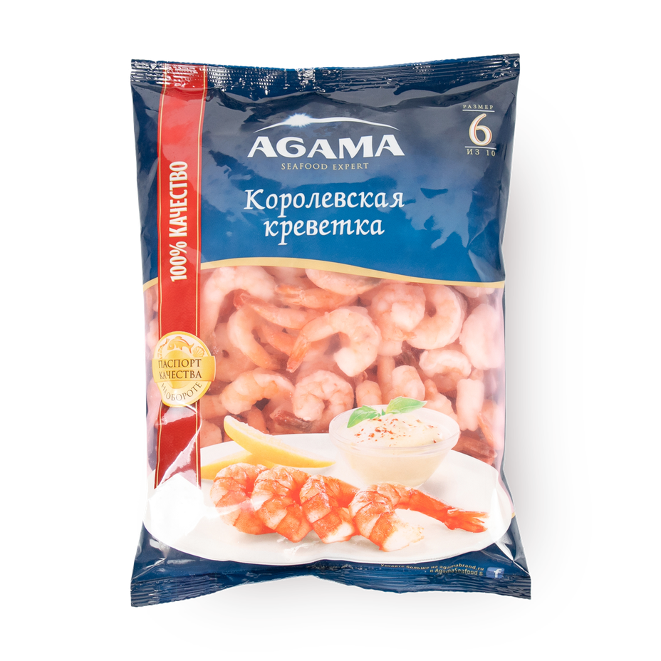 Креветки королевские Agama очищенные с хвостом варёно-мороженые