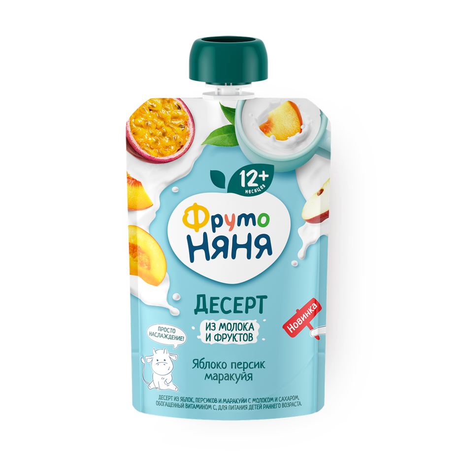 Десерт «Фрутоняня» из яблок, персиков и маракуйи с молоком и сахаром