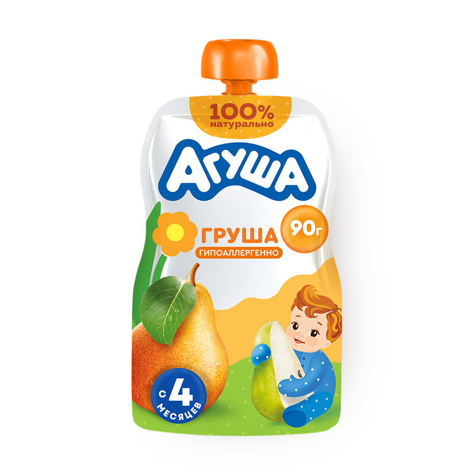 Грушевое пюре для детей с 4 месяцев. Его можно взять с собой или сразу предложить малышу.