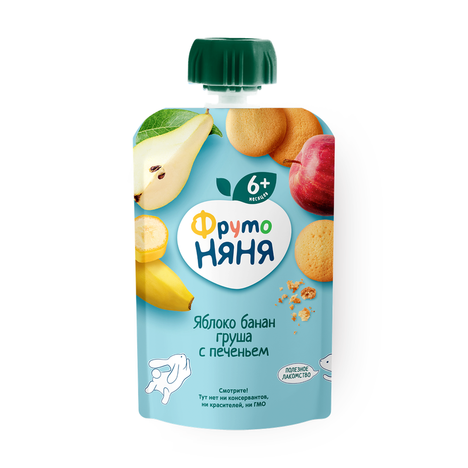 Пюре «ФрутоНяня» яблоко-банан-груша с печеньем с 6 месяцев