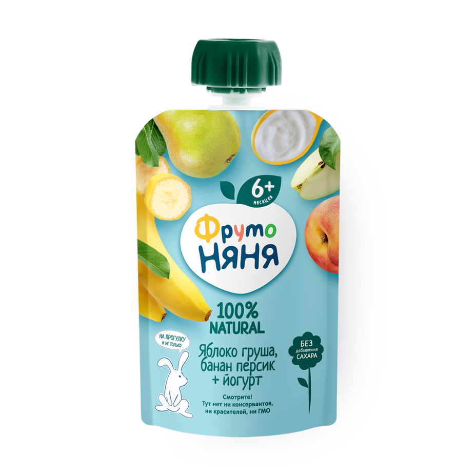 Пюре «ФрутоНяня» яблоко-груша-банан-персик с йогуртом с 6 месяцев
