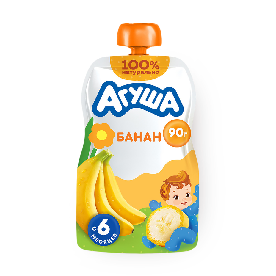 Пюре из банана подходит для малышей с 6 месяцев. В составе только банановое пюре, вода и немного лимонного сока.