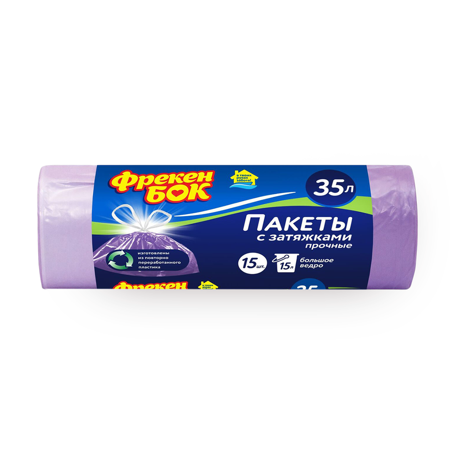 Эти пакеты выдерживают до 35 литров и подходят для бытового мусора. В упаковке 15 штук, которые удобно хранить в рулоне.