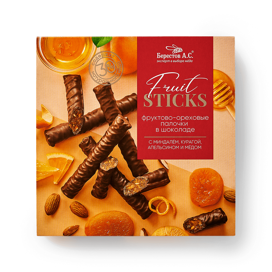 Палочки «Берестов А.С.» с миндалём, курагой, апельсином и мёдом в шоколаде