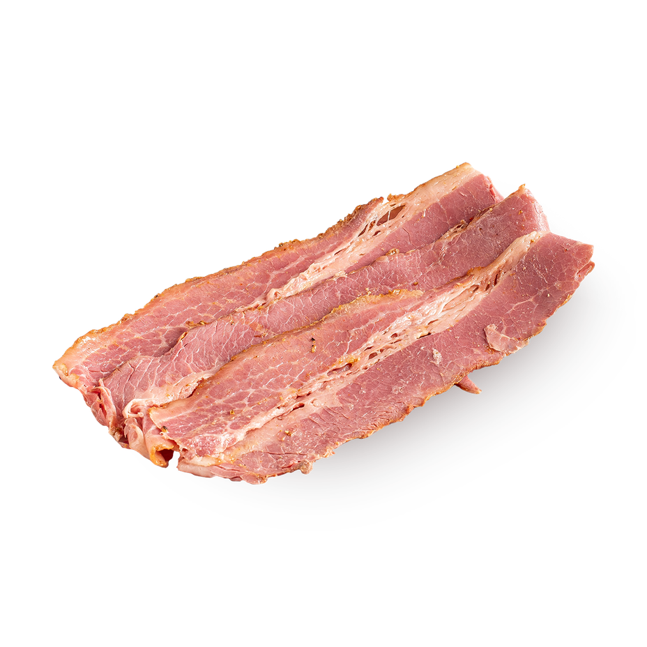 Этот мясной деликатес приготовили с пряностями, которые придают ему насыщенный вкус. Пастрами можно добавить в сэндвич или подать к сырной тарелке.