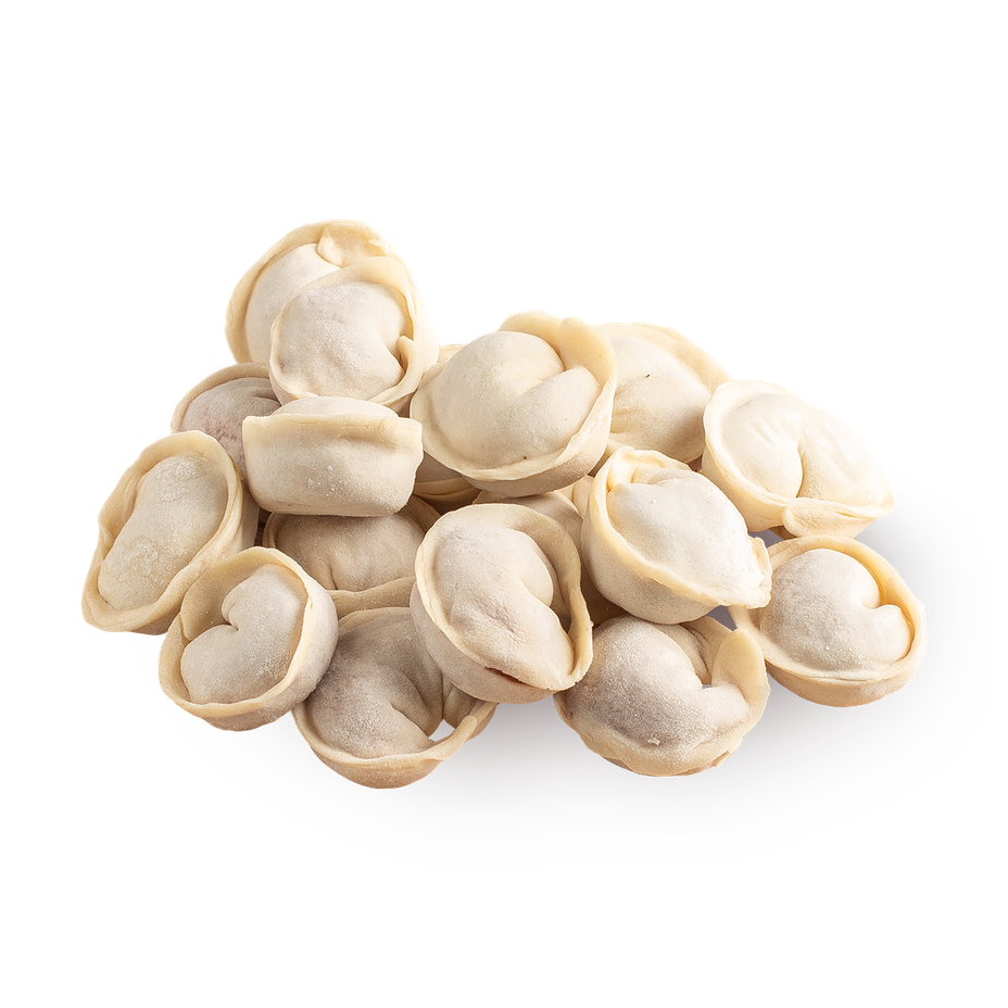 Эти пельмени сделаны из говядины и курицы с добавлением лука и чёрного перца. Их можно сварить или приготовить на пару для сытного обеда.