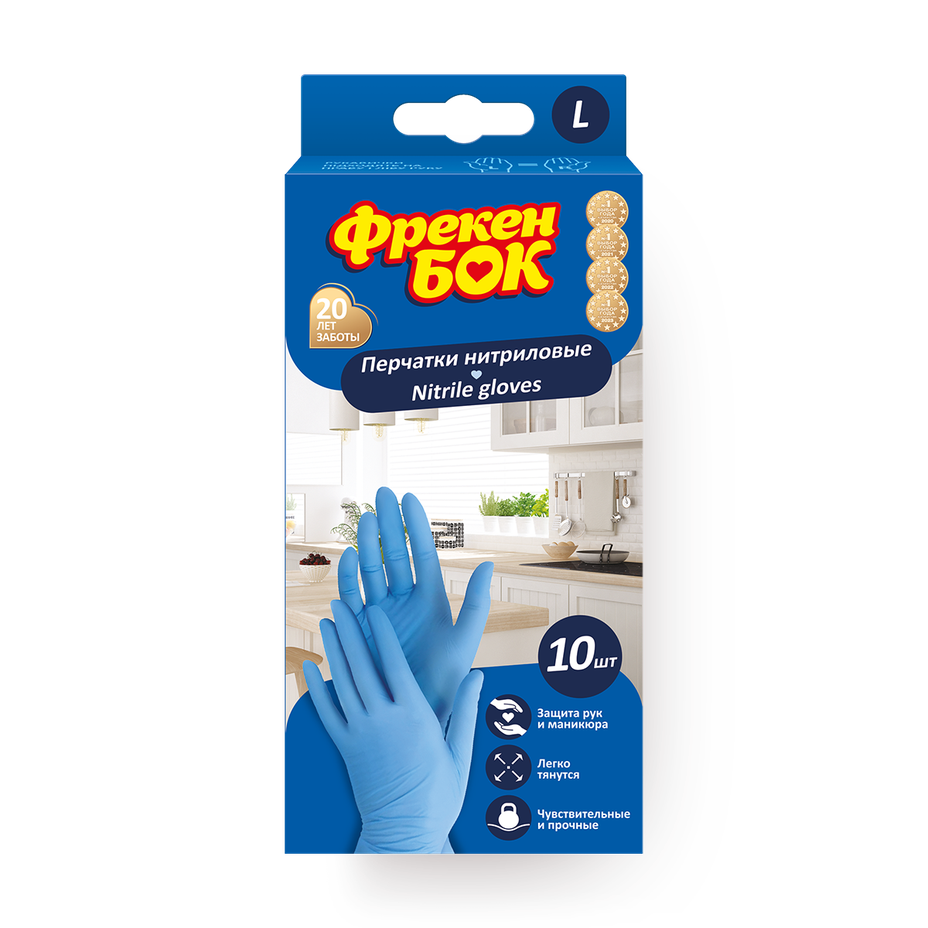 Эти перчатки из нитрила подходят для уборки и других хозяйственных задач. Они плотно сидят на руке и защищают кожу от загрязнений.
