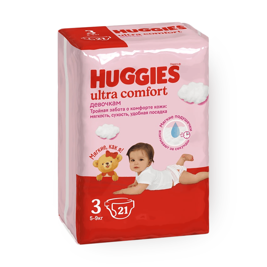 Подгузники Huggies Ultra Comfort для девочек 3 размер 5-9 кг