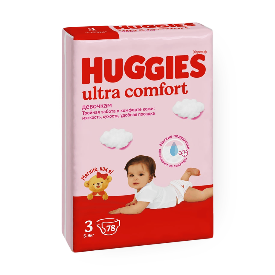 Подгузники Huggies Ultra Comfort для девочек 3 размер 5-9 кг