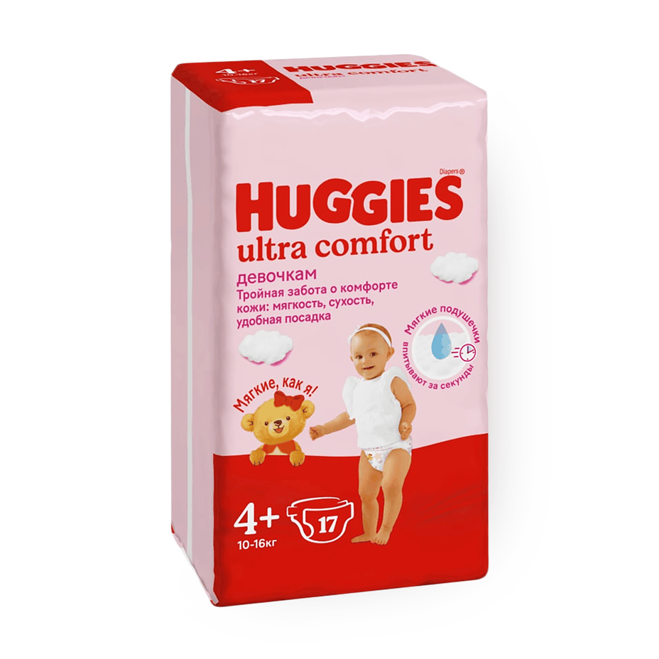 Подгузники Huggies Ultra Comfort для девочек 4+ размер 10-16 кг