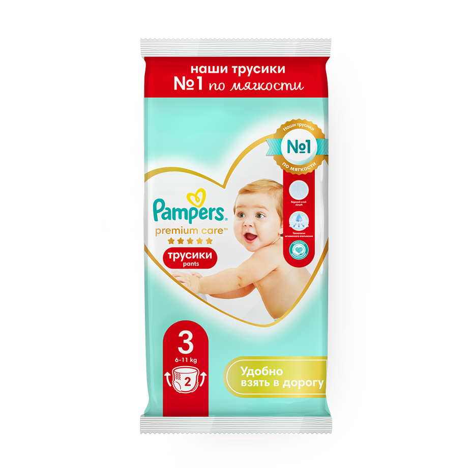 Эти подгузники-трусики удобно надевать и снимать, как обычное бельё. Они подходят для детей весом от 6 до 11 килограммов.