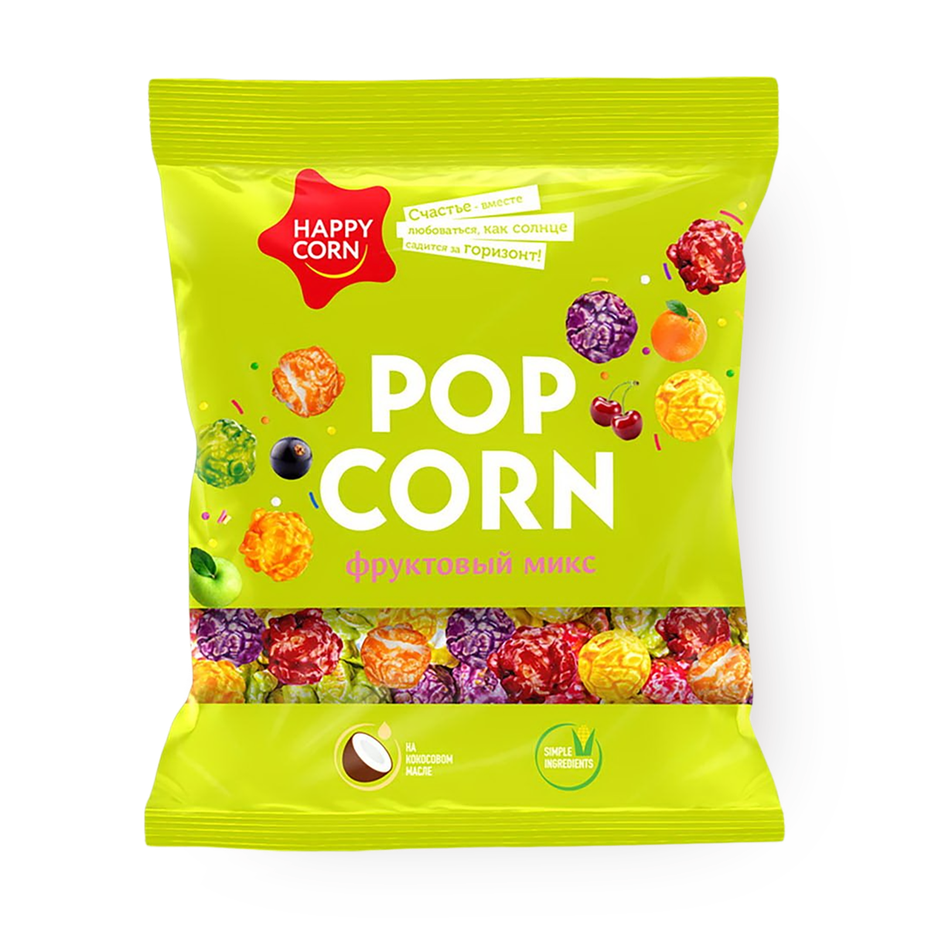Этот попкорн сочетает вкусы яблока, банана, апельсина и других фруктов. Его можно взять с собой в кино или на прогулку.