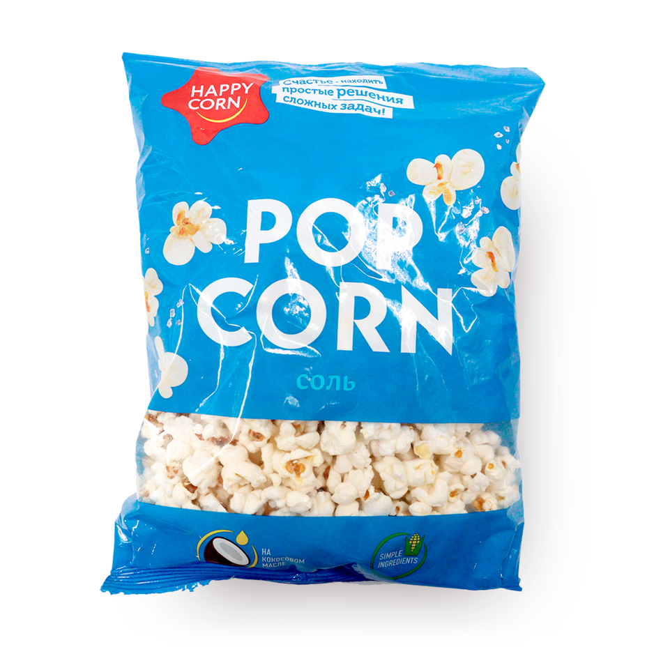 Этот попкорн приготовили с кокосовым маслом и солью. Можно взять с собой в кино или съесть дома.