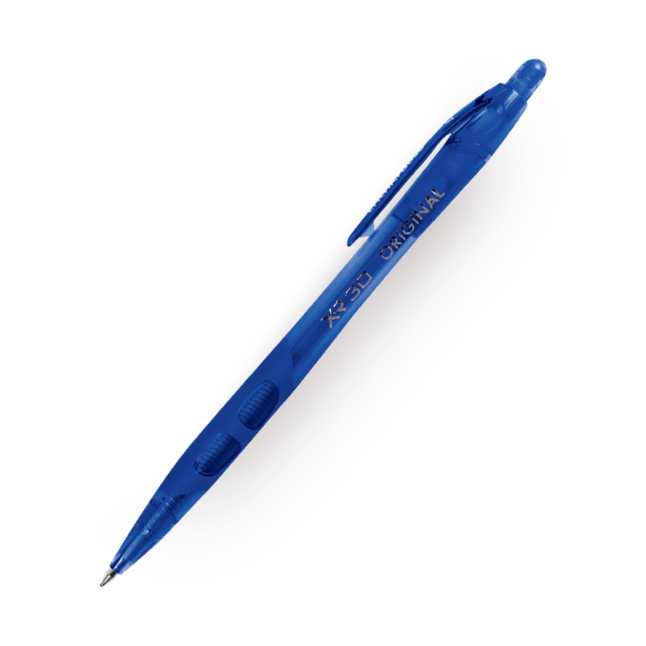 Эта ручка пишет синими чернилами, которые не размазываются на бумаге. Её удобно держать в руке, а автоматический механизм позволяет легко убрать стержень.
