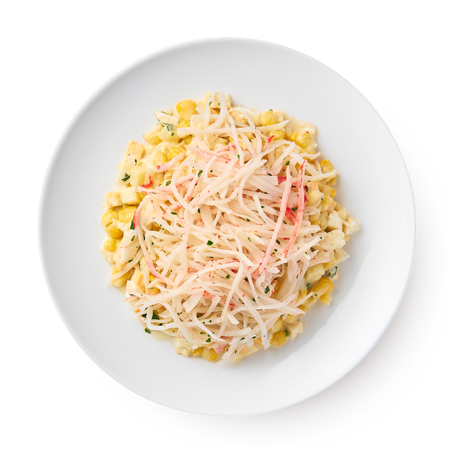 Этот салат сочетает крабовые палочки с кукурузой и яйцами в майонезной заправке. Можно подать его на тосты или добавить в качестве ингредиента для других блюд.