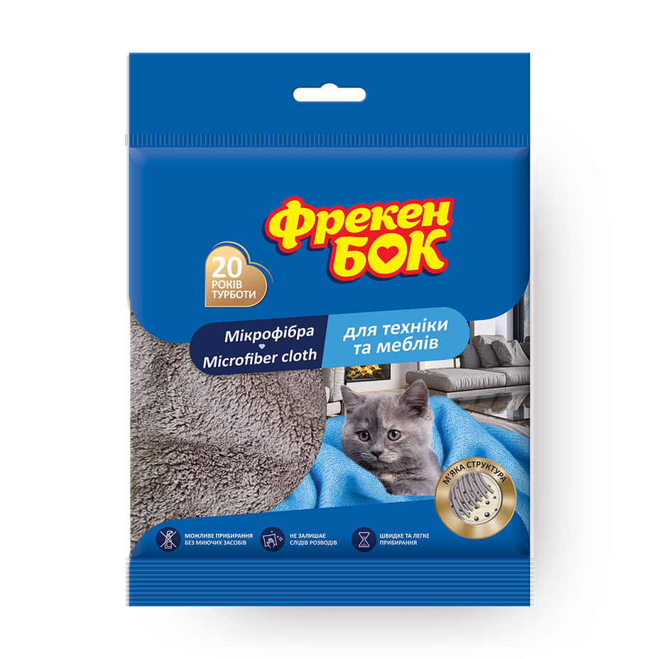Эта салфетка из микрофибры подходит для ухода за мебелью и бытовой техникой. Она хорошо собирает пыль и не оставляет разводов.