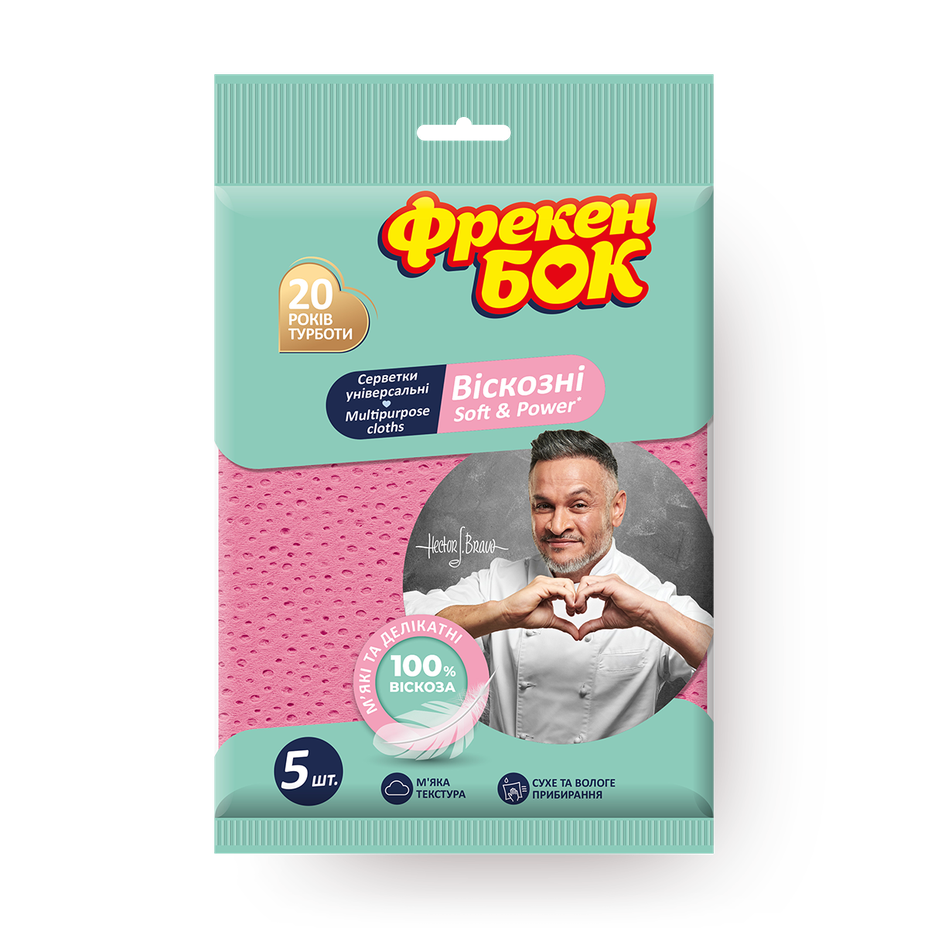 Эти вискозные салфетки легко справляются с загрязнениями благодаря перфорации. Их можно использовать для мытья поверхностей или протирания пыли.