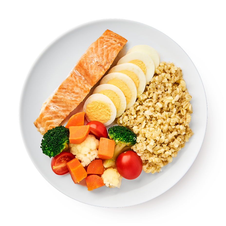 Смесь булгур киноа заправка (булгур отварной, киноа отварное, соус мицукан (уксус рисовый, сахар песок, соль пищевая йодированная)), форель на пару (рыба форель, соль пищевая йодированная), капуста брокколи, морковь красная отварная, капуста цветная, помидоры черри, соус для лосося терияки (соевый соус, соус мицукан (уксус рисовый, сахар песок, соль пищевая йодированная)), яйцо куриное.