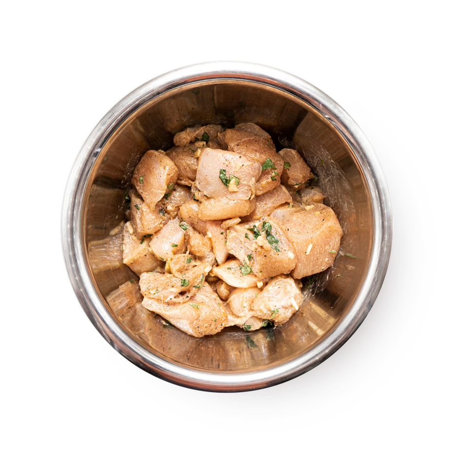 Куриное филе, сливки 30%, зелень, соль, чеснок, приправы/специи.