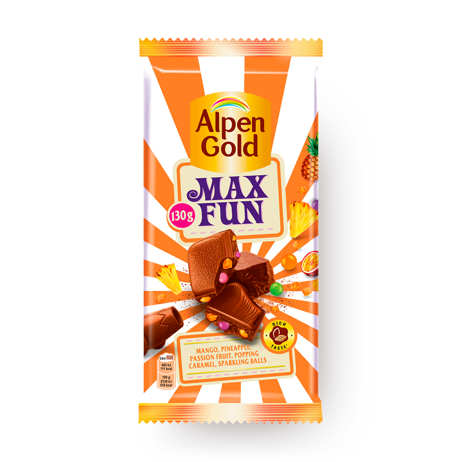 Шоколад молочный (сахар, какао тёртое, масло какао, сыворотка сухая молочная, молоко сухое цельное, жир молочный, молоко сухое обезжиренное, эмульгаторы (лецитин соевый, Е476), ароматизатор); фруктовые кусочки со вкусом манго, ананаса, маракуйи (пюре яблочное концентрированное, сироп глюкозно-фруктозный, сироп глюкозный, сахар, концентраты соков (ананас, маракуйя); пюре манго концентрированное, волокна пшеничные пищевые, регулятор кислотности (кислота лимонная), желирующий агент (пектин), жир растительный (масло пальмовое), ароматизаторы натуральные); взрывная карамель (сахар, сироп глюкозный, лактоза (из молока)); шипучие рисовые шарики со вкусом малины, клубники, лимона, лайма, апельсина (сахар, мука рисовая, масло какао, регуляторы кислотности (кислота лимонная, гидрокарбонат натрия), молоко сухое цельное, лактоза (из молока), крахмал тапиоковый, молоко сухое обезжиренное, глазирователь (шеллак), эмульгатор (лецитин подсолнечный), сироп глюкозный, ароматизатор, соль, концентраты соков (редиcа красного, яблока, чёрной смородины), красители (рибофлавин, Е141, экстракт паприки)).
