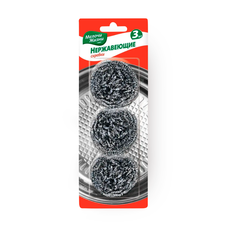 Этот скребок из нержавеющей стали подходит для чистки посуды и плит. В наборе три штуки — можно использовать по очереди или разложить в разных местах.