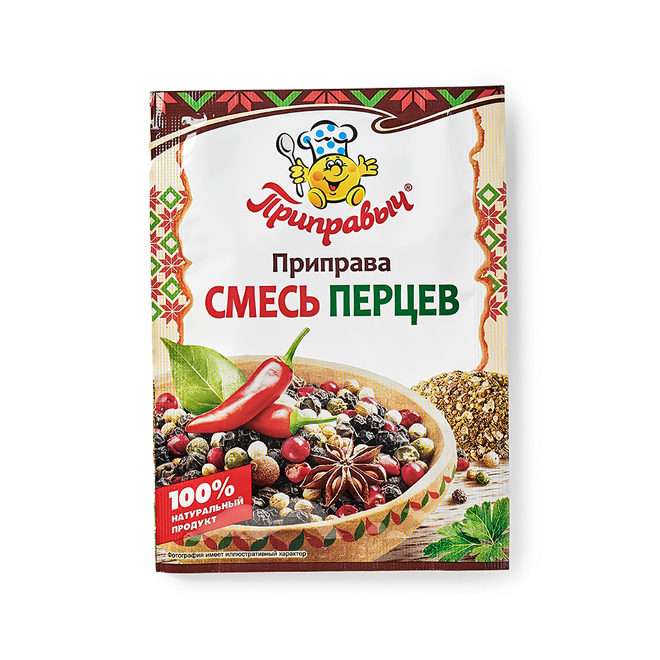 Эта смесь объединяет чёрный, красный и душистый перец с чесноком и паприкой. Подходит для мяса, супов или овощных блюд.
