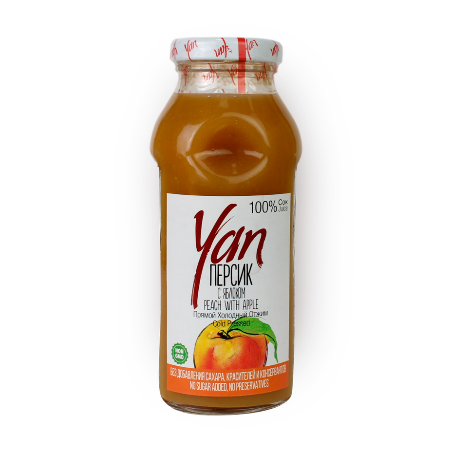 Этот сок сделан из персикового пюре и яблочного сока. Его можно пить охлаждённым или добавить в смузи.