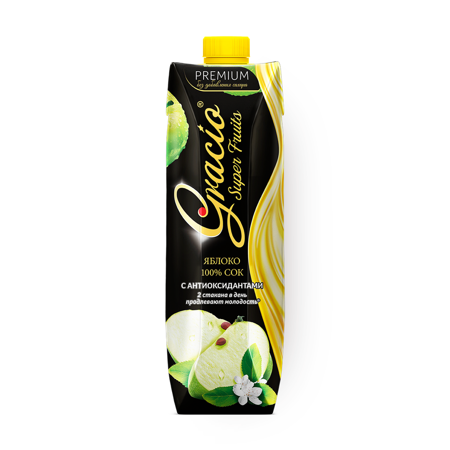 Этот сок сделан из яблок, которые собрали в Казахстане. Его можно пить охлаждённым или добавлять в смузи.