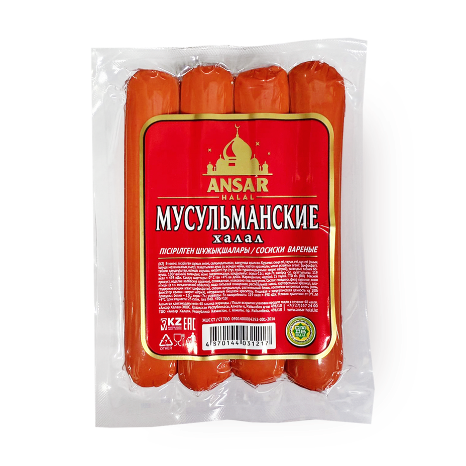 Филе куриное (в т.ч. механической обвалки), говядина, вода питьевая очищенная, растительное масло, картофельный крахмал, влагоудерживающий агент (дифосфаты), специи натуральные,растительный белок, посолочно-нитритная смесь(соль, фиксатор краски: нитрит натрия), натуральный пищевой краситель. Ет өнімі, пісірілген шұжық өнімі,салқындатылған.
