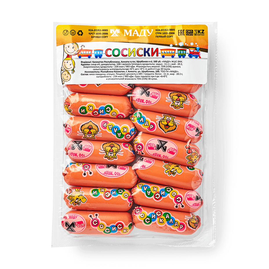 Эти сосиски сделаны из говядины с добавлением специй. Они подходят для детского меню или быстрого перекуса.