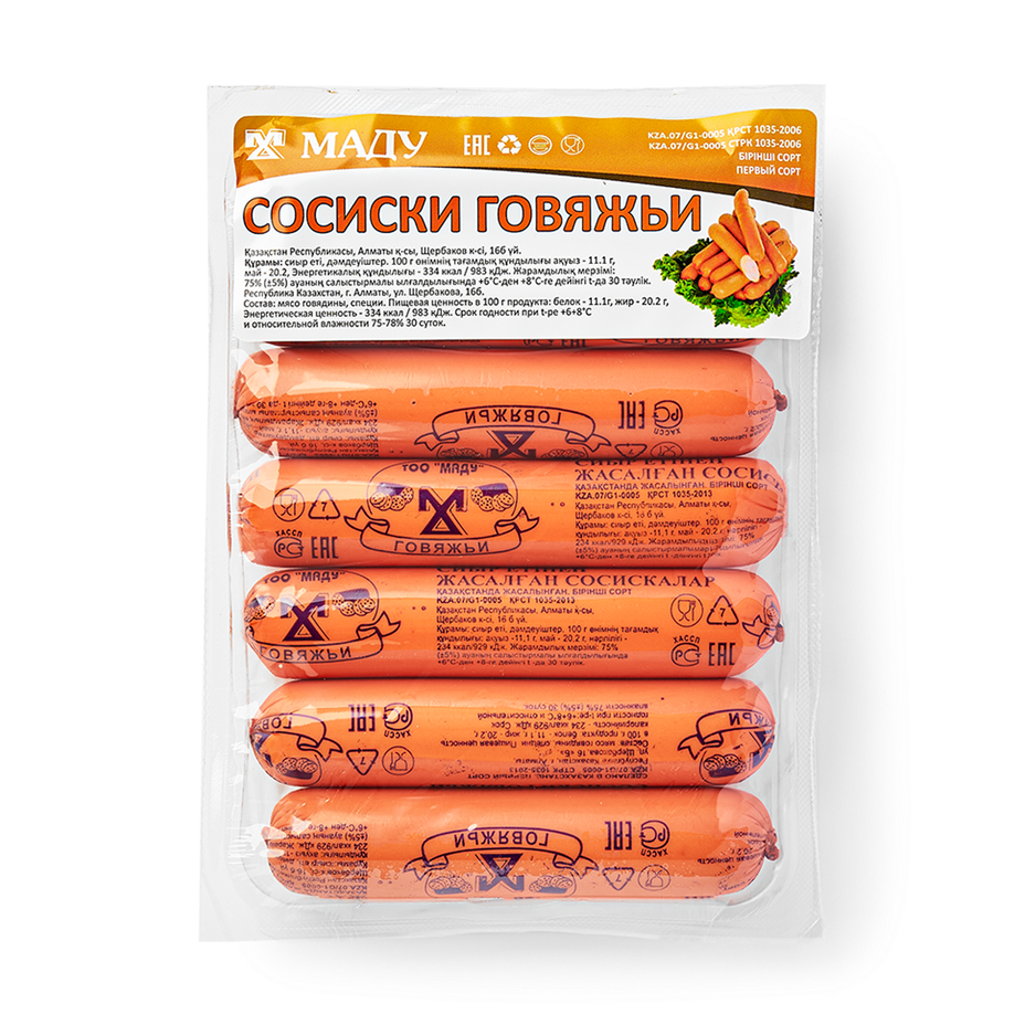 Эти сосиски сделаны из говядины с добавлением специй. Их можно пожарить или сварить для горячего блюда.