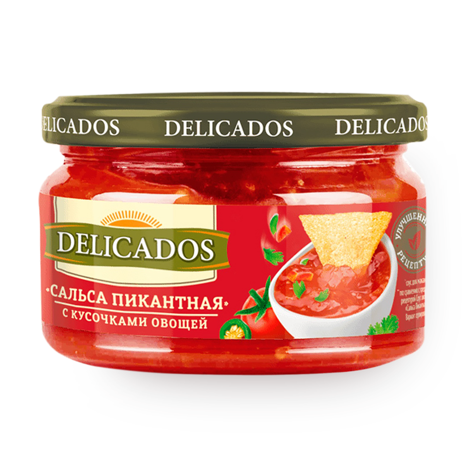Вода, сахар, томатная паста, загуститель Е1422, курага, соль, уксус спиртовой, чеснок свежий, уксусная кислота 70 %, паприка красная сушёная, перец чили сушёный, имбирь сушёный, консерванты – сорбат калия и бензоат натрия, ароматизатор, краситель экстракт паприки.