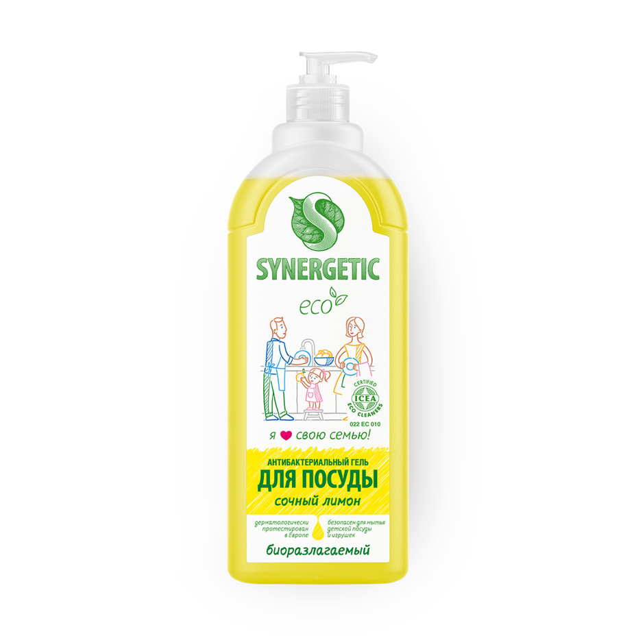 Средство для мытья посуды Synergetic антибактериальное с ароматом лимона