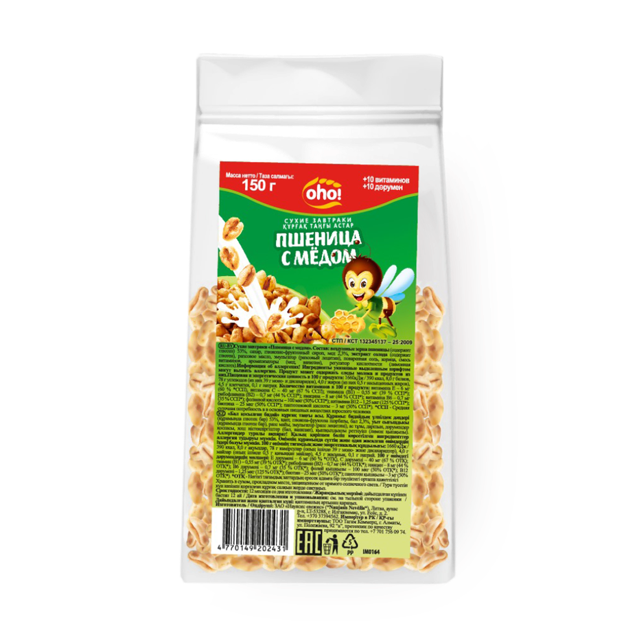 Воздушные зёрна пшеницы (содержит глютен) 53%, сахар, глюкозно-фруктозный сироп, мёд 2,3%, экстракт солода (содержит глютен), рапсовое масло, эмульгатор (рапсовый лецитин), поваренная соль, корица, смесь витаминов, ароматизаторы (мёд, ванилин), сгущённое молоко, регуляторы кислотности (лимонная кислота).