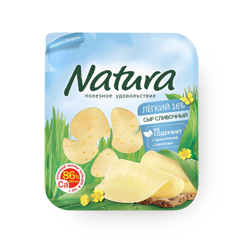 Сыр сливочный лёгкий Natura 16% нарезка