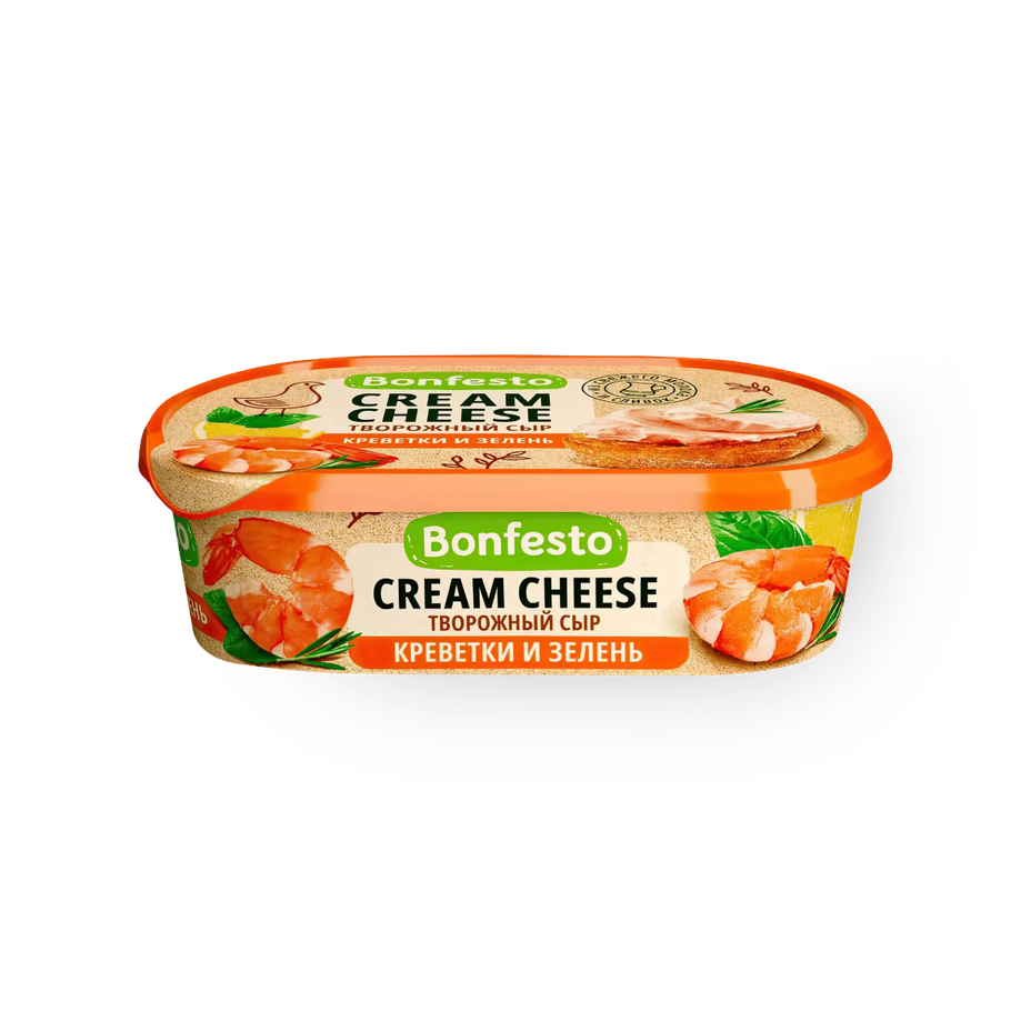 Сыр творожный кремчиз «Bonfesto», креветки и зелень