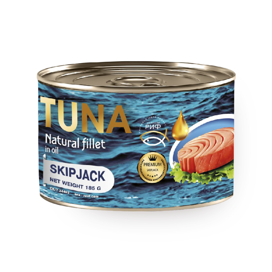 Тунец филе Skipjack «Морской риф» натуральный в собственном соку