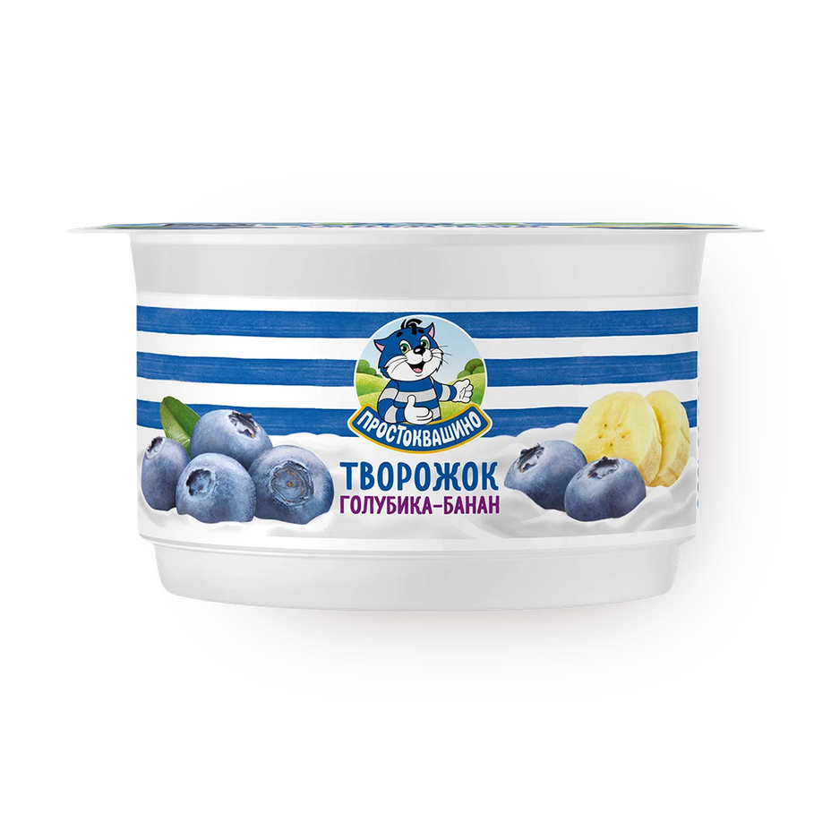 Творожок с кусочками голубики и банана в сливочной текстуре. Можно взять с собой или съесть на завтрак.