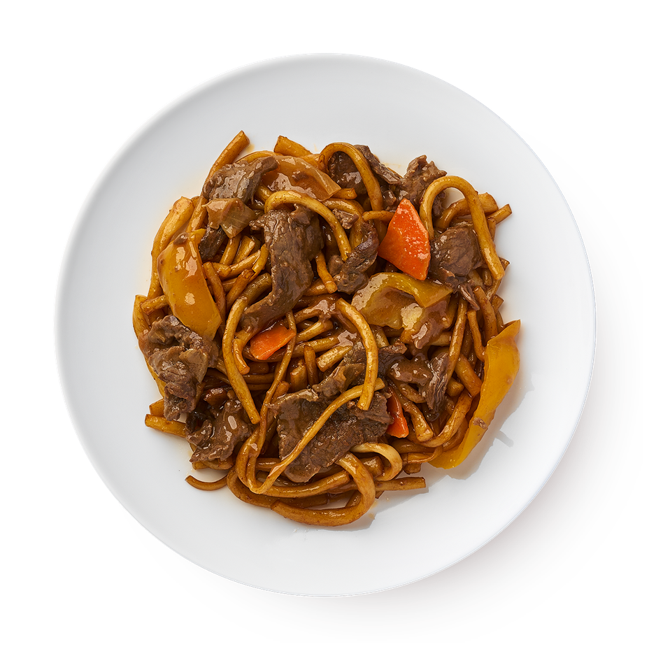 Говядину с овощами и лапшой удон приготовили с устричным и соевым соусами. Это блюдо можно разогреть за несколько минут.