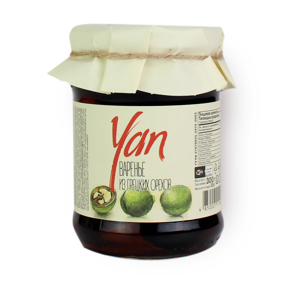 Это варенье приготовили из зелёных грецких орехов, которые придают ему необычный вкус. Можно добавить в чай или использовать в качестве начинки для выпечки.