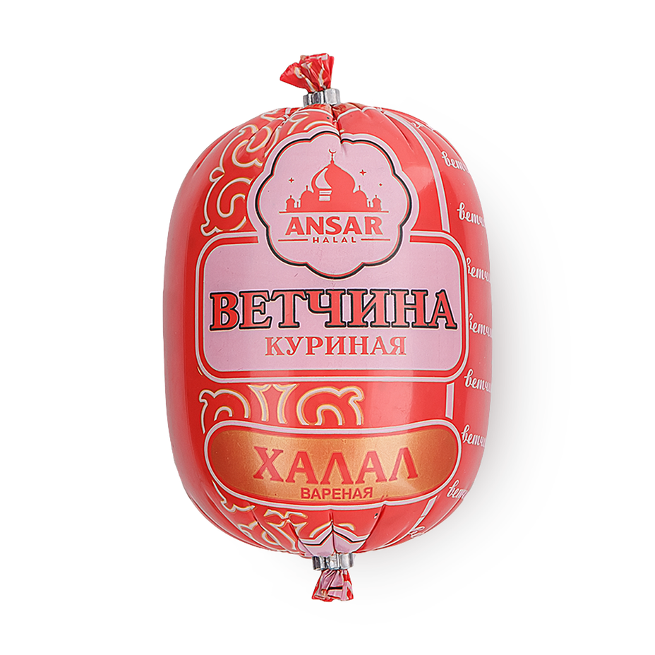 Эта ветчина сделана из куриного филе с добавлением натуральных специй. Её можно нарезать для бутербродов или добавить в салат.