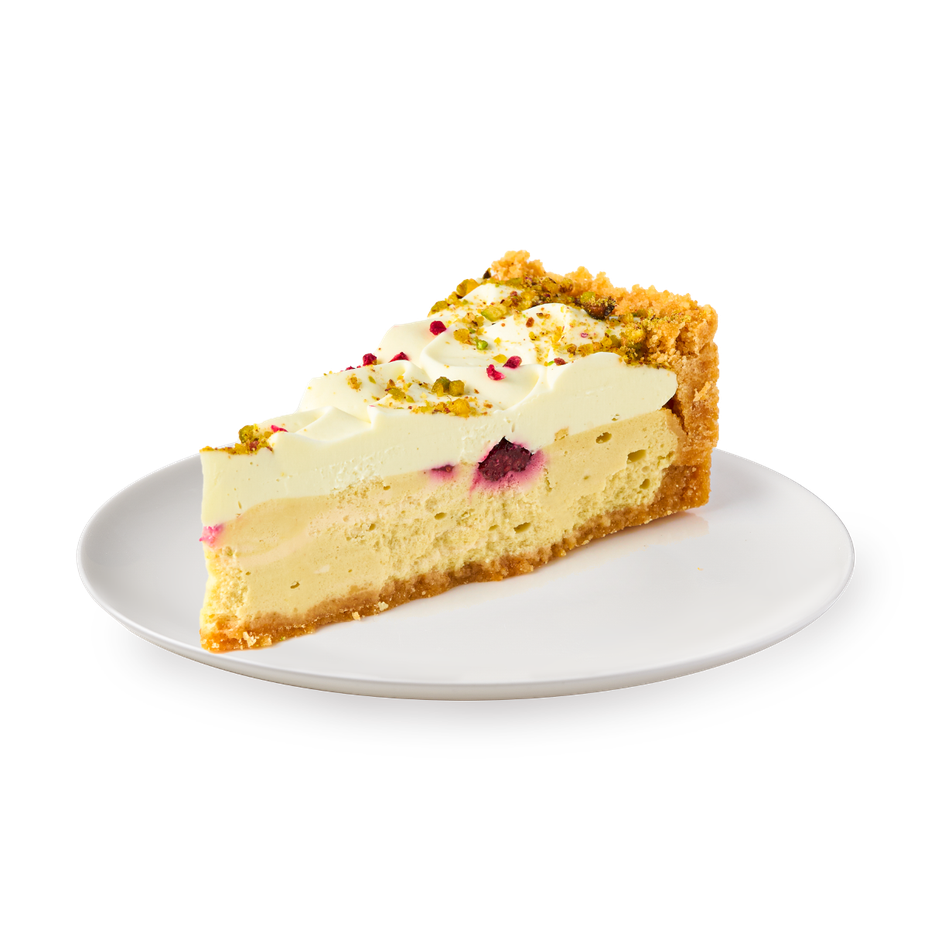 Сыр творожный, сливки 33%, сахар-песок, мукапшеничная высший сорт, яйцо куриное, масло сливочное, спред, пудра сахарная, сметана, маргарин, соль, фисташковая паста, малина сублимированная, орех фосташка, разрыхлитель, ванилин.