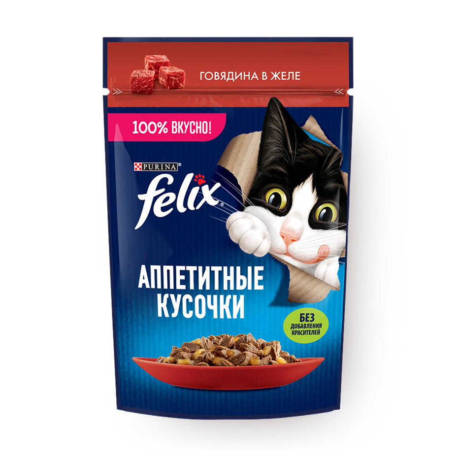 Влажный корм для кошек Felix Аппетитные кусочки с говядиной в желе