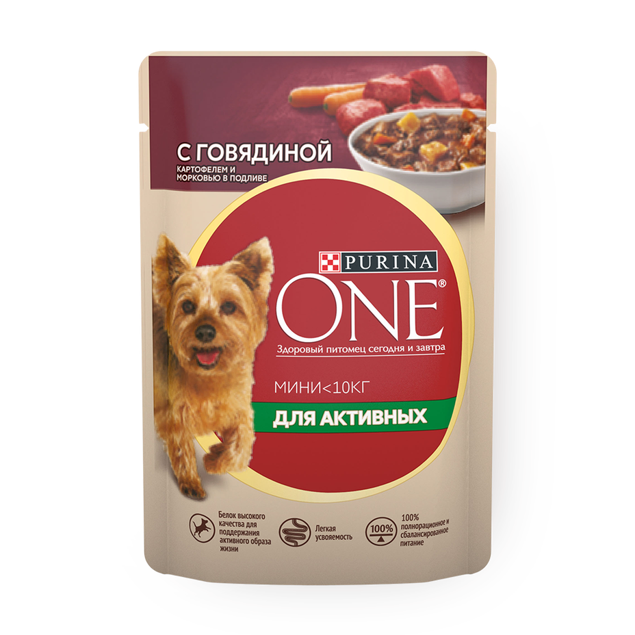 Влажный корм для собак Purina One Mini говядина, картофель и морковь