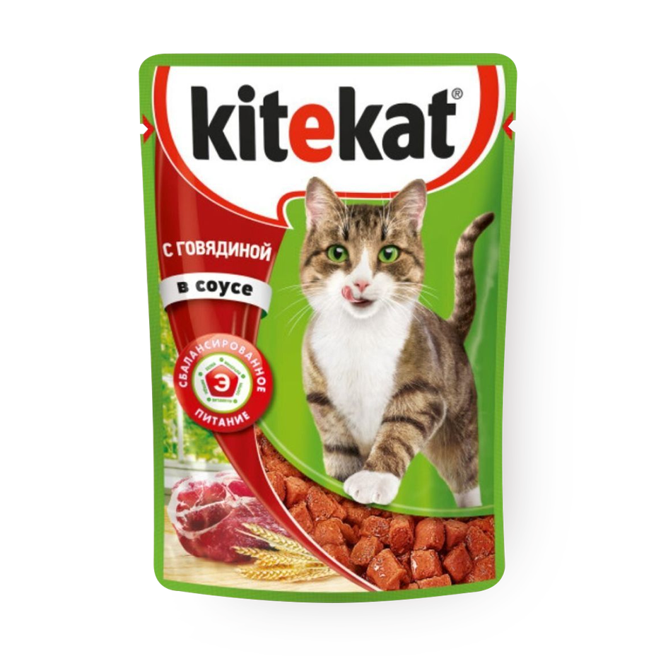Влажный корм для взрослых кошек Kitekat говядина в соусе