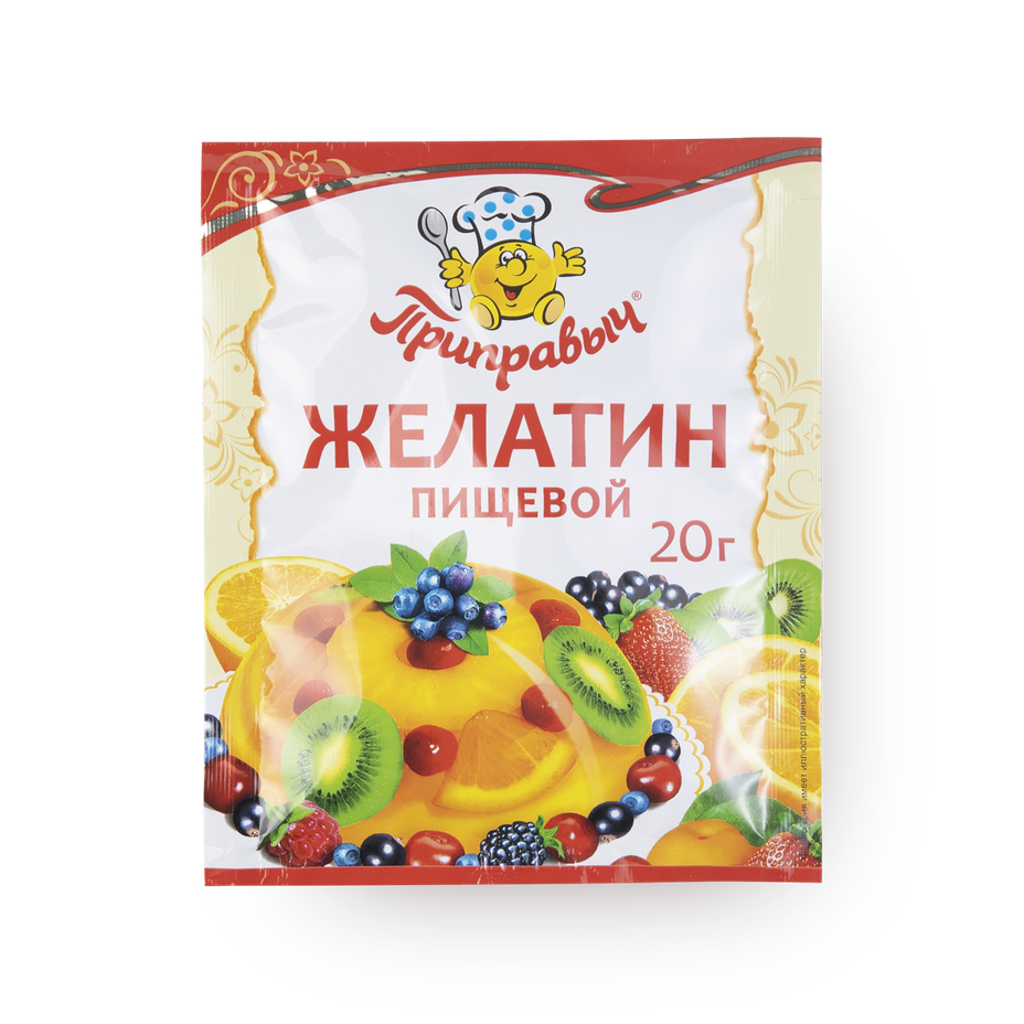 Этот желатин подходит для приготовления десертов и заливных блюд. Его можно использовать в домашней выпечке или для создания желейных конфет.
