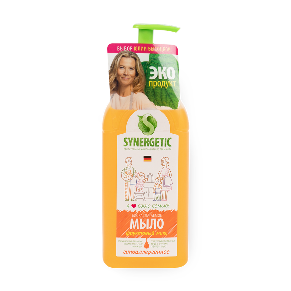 Это жидкое мыло с фруктовым ароматом, которое мягко очищает кожу. Его удобно использовать дома или взять с собой в дорогу.