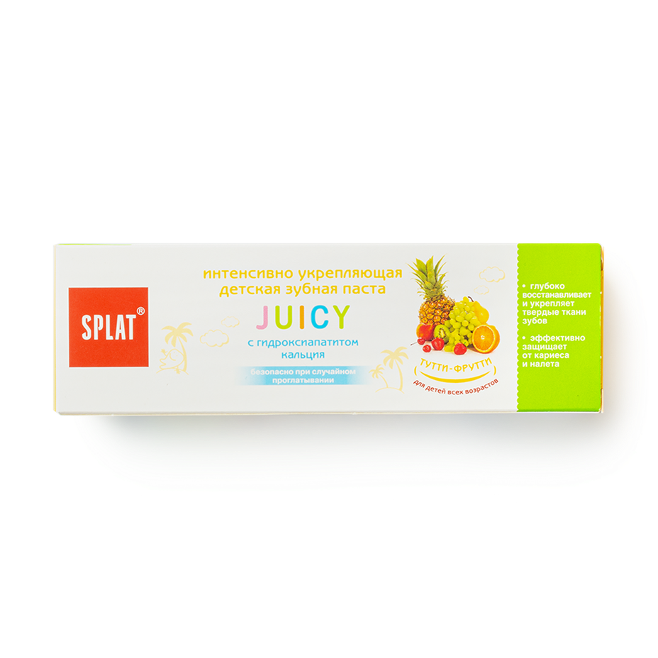 Эта зубная паста с фруктовым вкусом подходит для детей, которые только учатся чистить зубы. Её можно использовать утром и вечером.