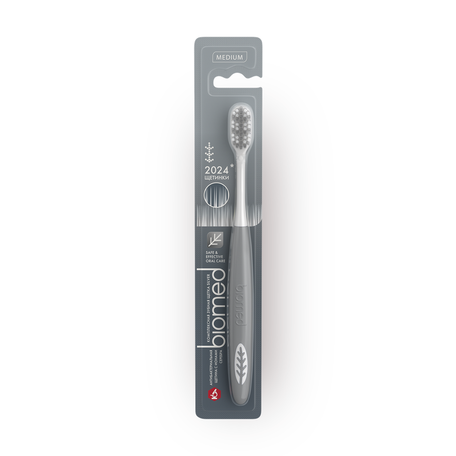 Зубная щетка Biomed Silver с ионами серебра средней жёсткости