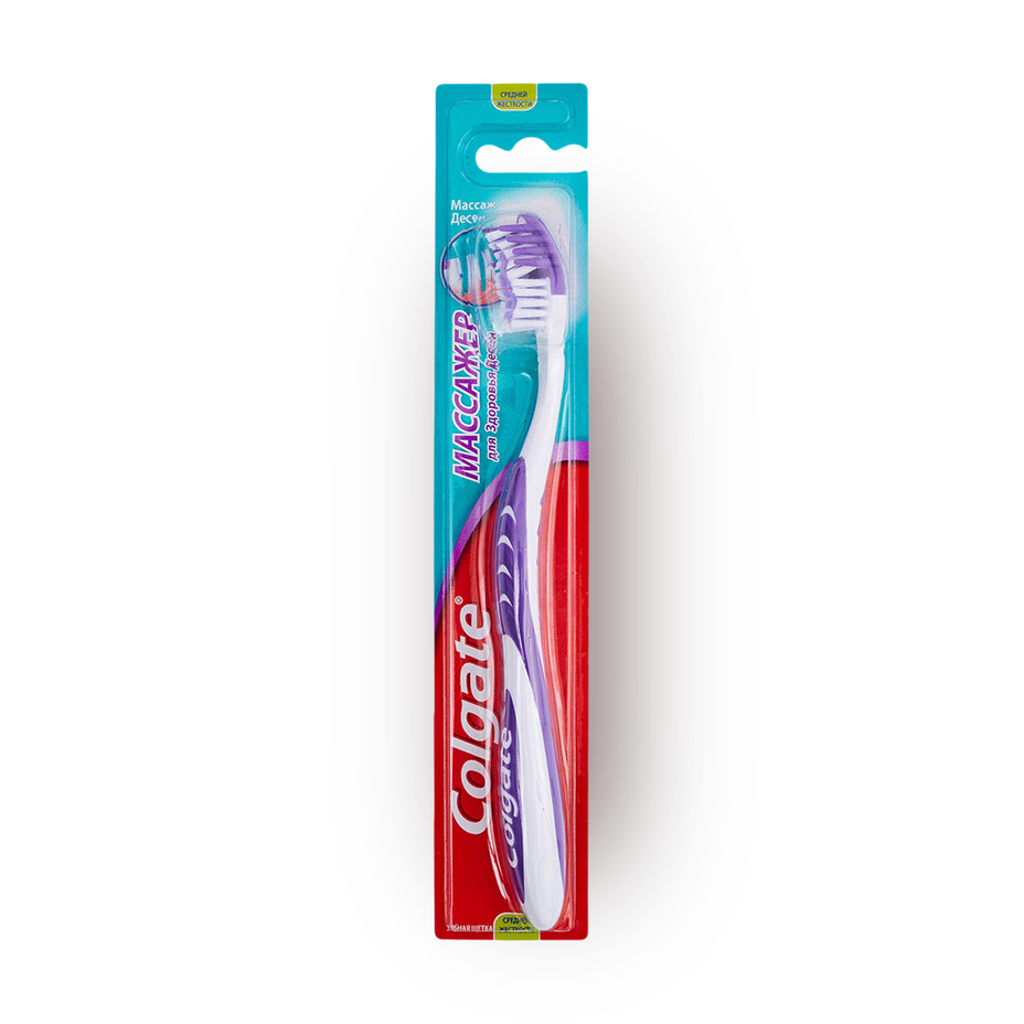 Эта зубная щётка средней жёсткости подходит для ежедневного ухода. Её щетина бережно очищает зубы и массирует дёсны.